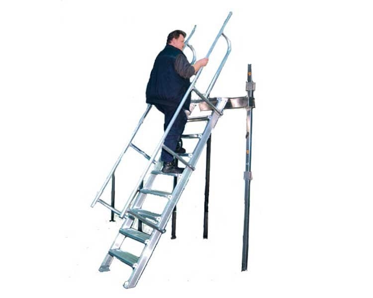 Алюминиевый трап Krause стационарный, 600мм 17 ступеней 45° 822468 поставляется с одним поручнем, правым или левым, по выбору, второй поручень предлагается за отдельную плату. Прочный алюминиевый трап для индивидуальных целей в соответствии с DIN EN ISO 14122. Ширина ступеней: 600мм. Глубина ступеней: 225 мм. Ступени изготовлены из рифленого алюминия. Под заказ - комплектация ступенями из решетки или перфорированного листового металла. Поручни оборудованы защитной планкой на уровне колен. Для крепления верхней части трапа предлагается на выбор опорный уголок или крепежная планка. Нижняя часть фиксируется двумя уголками напольного крепления, размещенными на боковине. Изделие поставляется в виде предварительно смонтированных узлов. В соответствии с требованиями стандарта DIN EN ISO 14122-4 рекомендуется в целях безопасности преимущественно использовать трапы с наклоном 45 градусов. Использовать трапы с наклоном 60 градусов только в том случае, если условия выполнения работ не допускают иного выбора. Tрапы с иными значениями угла наклона, ширины ступени, другим типом поверхности поставляются под заказ в качестве специальных версий. Изготовлено согласно DIN EN ISO 14122, при высоте более 4000 мм требуется промежуточный помост.